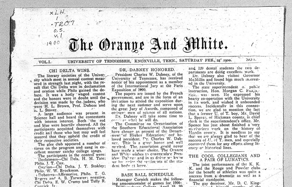 The campus newspaper dates all the way back to 1900, where its first iteration was titled The Orange and White. The paper began publishing weekly in 1906 and later transitioned to a semi-weekly format to accommodate the growing demand for campus news.